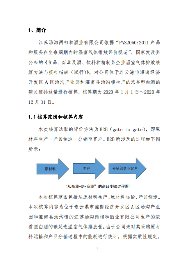 江蘇湯溝兩相和酒業(yè)2020年度碳足跡核算報(bào)告