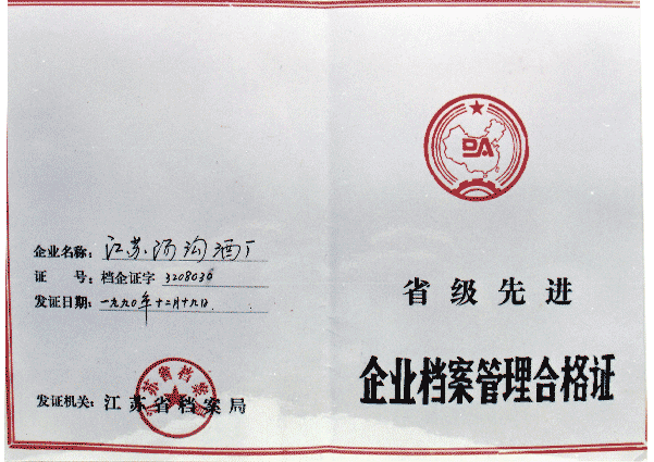 獎項名稱:湯溝酒業(yè)獲得—省級先進企業(yè)檔案管理合格證