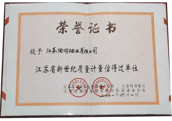 獎(jiǎng)項(xiàng)名稱:湯溝酒業(yè)榮獲—江蘇省新世紀(jì)質(zhì)量計(jì)量信得過(guò)單位